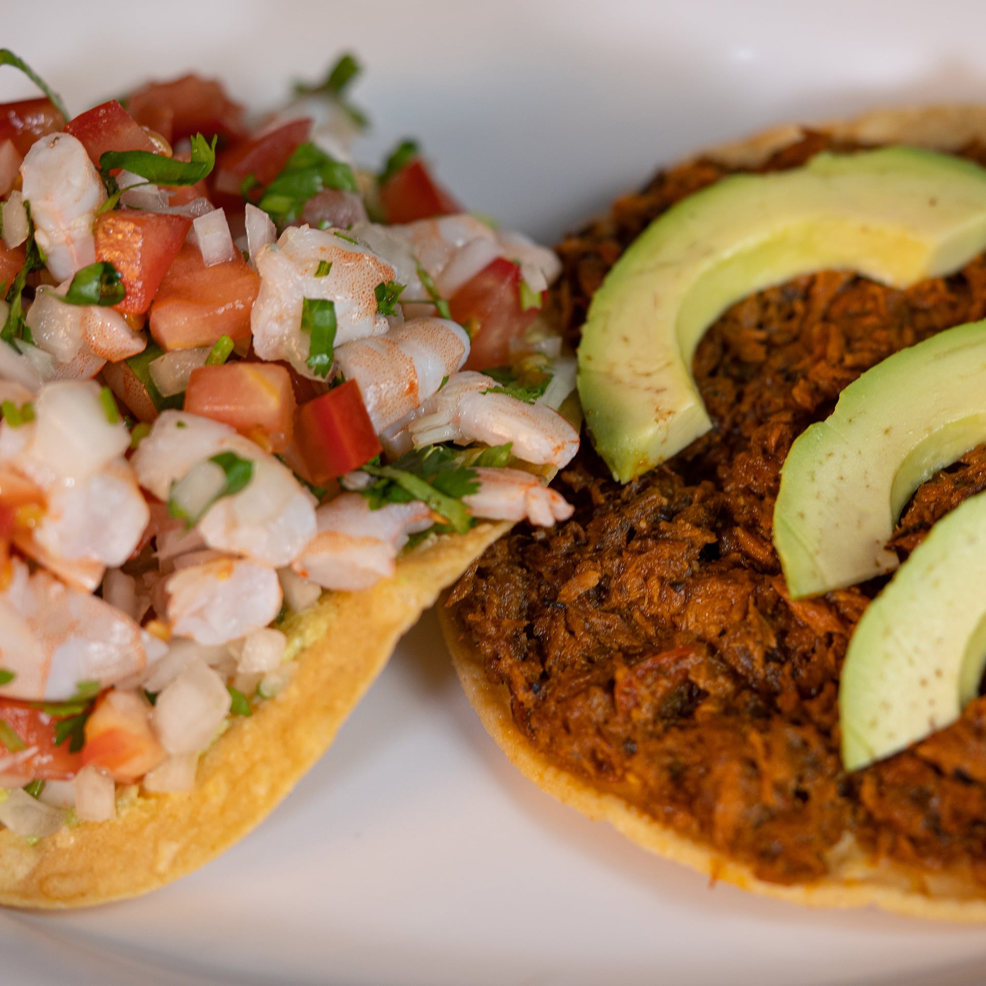 Tostadas de camarón y marlin